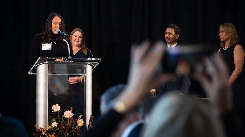 Sarkar returned to the podium to introduce and speak briefly about the 2025 Hall of Fame inductees. Alperovitch and LeBlanc each shared their gratitude and remarks from the podium following the dean’s introduction.