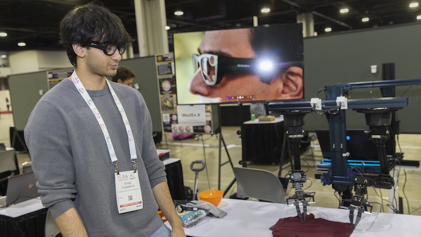 Main Photo: Ryan Punamiya works with a robot during the 2025 International Conference on Robotics and Automation in Atlanta. Photo by Terence Rushin/College of Computing.